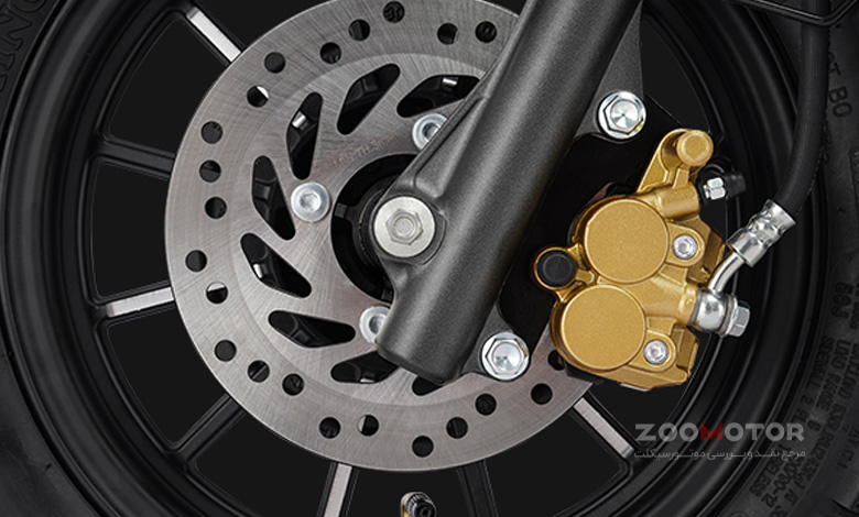 ترمز جلو شامل یک دیسک ۱۹۰ میلی‌متری با کالیپر دو پیستونه است که قدرت توقف مناسبی را برای این وزن فراهم می‌کند. ترمز عقب اما از نوع کاسه‌ای ۱۳۰ میلی‌متری است که در مقایسه با رقبایی همچون فیدل ۴ که دارای ترمز دیسکی عقب و سیستم CBS (ترمز ترکیبی) هستند، یک نقطه ضعف فنی به شمار می‌رود. فقدان سیستم ABS (ترمز ضد قفل) به این معناست که در سطوح لغزنده یا شرایط اضطراری، احتمال قفل شدن چرخ‌ها و از دست رفتن پایداری وجود دارد.