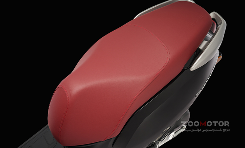 چراغ‌های راهنما نیز به شکلی ظریف در لبه‌های پنل جلویی ادغام شده‌اند که در ترکیب با دریچه ورودی هوای مرکزی، جلوه‌ای بصری شبیه به یک لبخند را در نمای روبرو ایجاد می‌کنند. در نمای عقب، چراغ ترمز برجسته با نوار LED تزئینی، نه‌تنها دید در شب را بهبود می‌بخشد، بلکه هماهنگی کاملی با دستگیره‌های سرنشین عقب دارد که به صورت ارگونومیک و با زاویه‌ای خاص روی زین تعبیه شده‌اند.