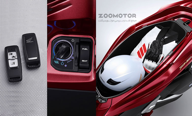 یکی از نقاط قوت اسکوترها، فضای ذخیرهسازی زیر زین است. در این بخش، هوندا برتری مطلق دارد. محفظه ۳۰.۴ لیتری PCX 160 میتواند یک کلاه کاسکت بزرگ فکدار و مقداری لوازم اضافی را به راحتی در خود جای دهد. در مقابل، فضای ۲۳ تا ۲۵ لیتری یاماها Nmax، اگرچه برای یک کلاه کاسکت کافی است، اما برای قرار دادن کیف لپتاپ یا خریدهای روزمره فضای کمتری در اختیار میگذارد.